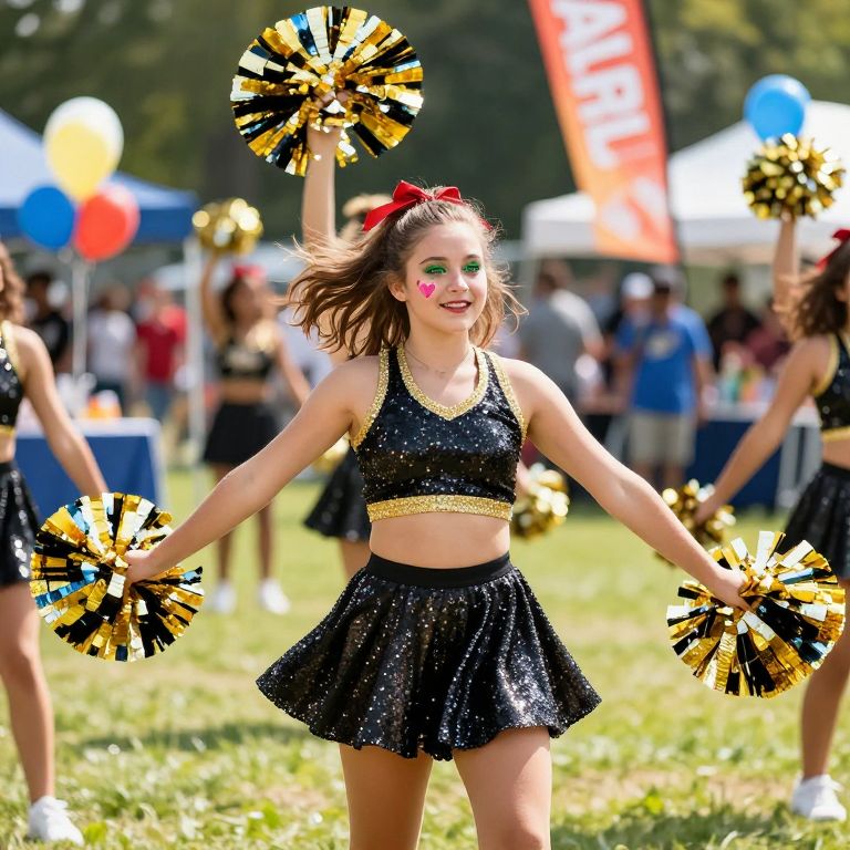 Festive Outdoor Cheerleader at School Festival