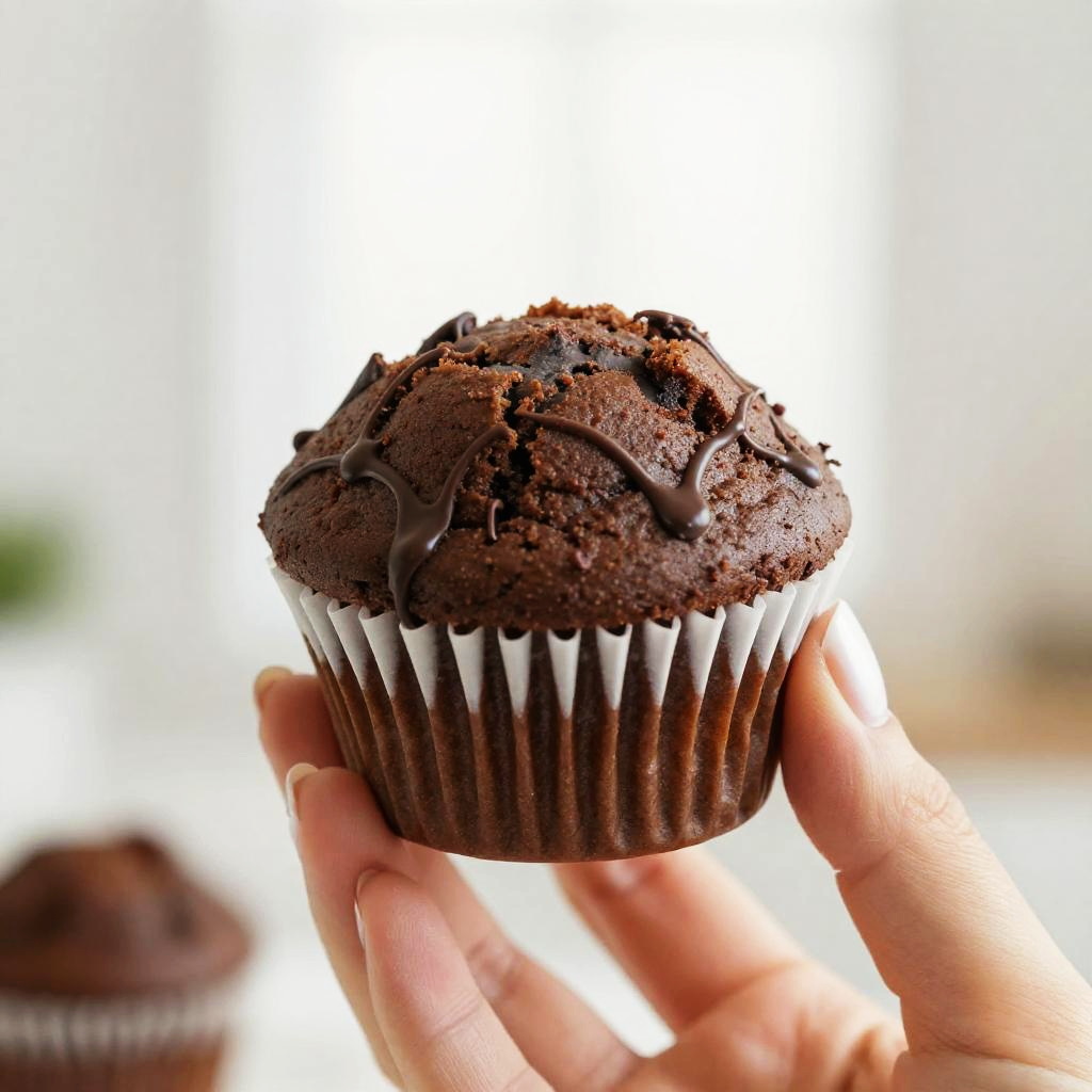 Hand Holding Chocolate-Covered Muffin