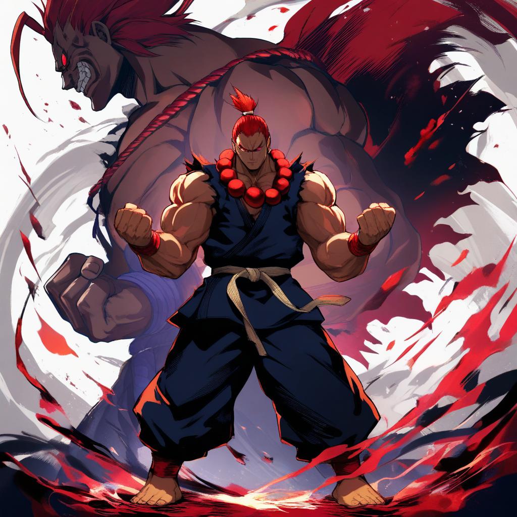 Illustration of Akuma (street fighter), street fighter in the style of Hanada hyou