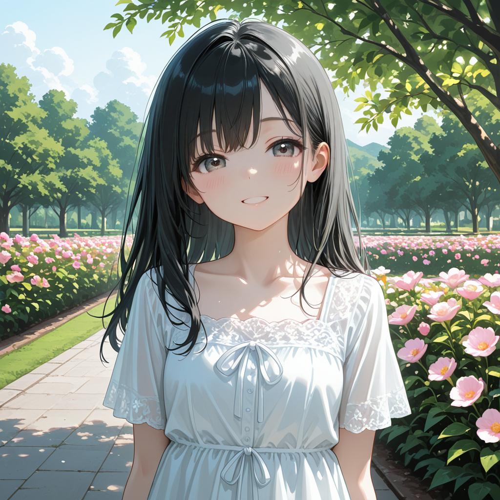 Absurdres, 1girl, forest, dress, (smile:0.7)