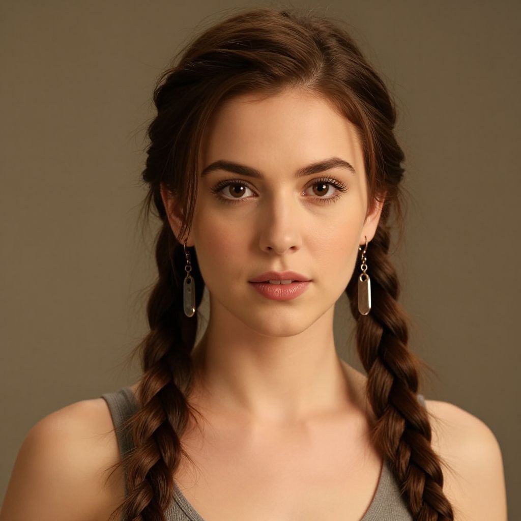 "funk hairstyle male, solo, 1girl, jewelry, necklace, breasts, brown hair, realistic, flower, blurry background, blurry, upper body, sleeveless, looking at viewer, cleavage, short hair, medium breasts, earrings Realistic photo of casual sexy person with pretty face"