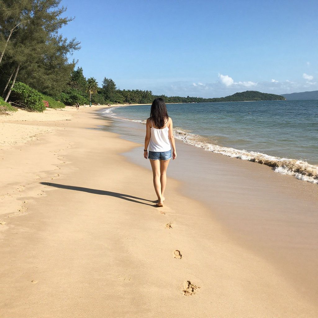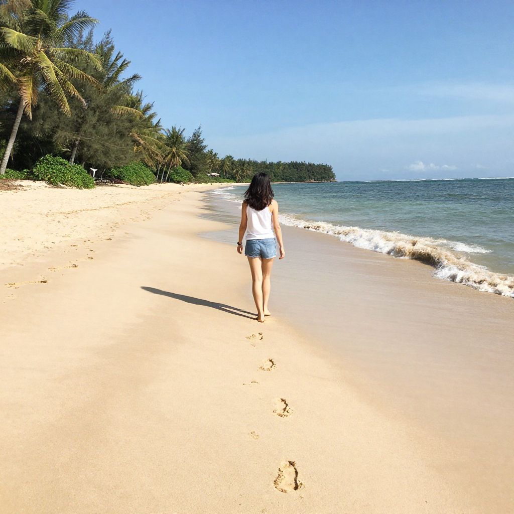 Solo Woman Walking on Tropical Beach
