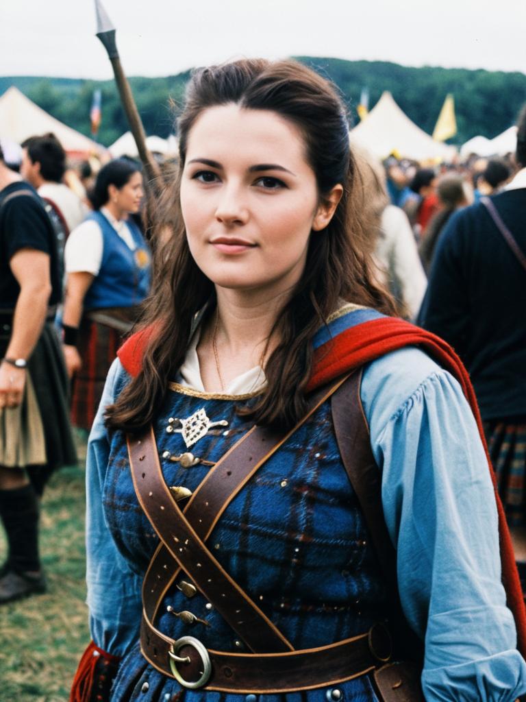 Woman in Braveheart-Inspired Costume, candid cosplay portrait at festival