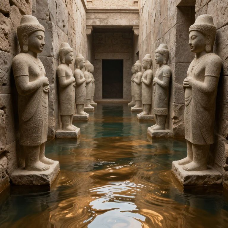 Descending into the depths of a forgotten city, the solitary figure traverses layers of history, each step echoing the weight of time, while the radiant glow at the bottom whispers of hidden truths and untold stories.