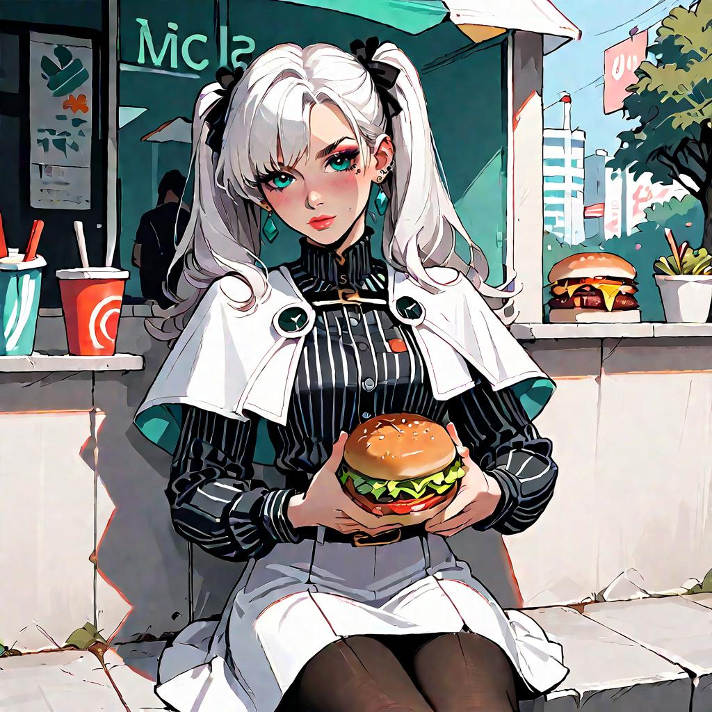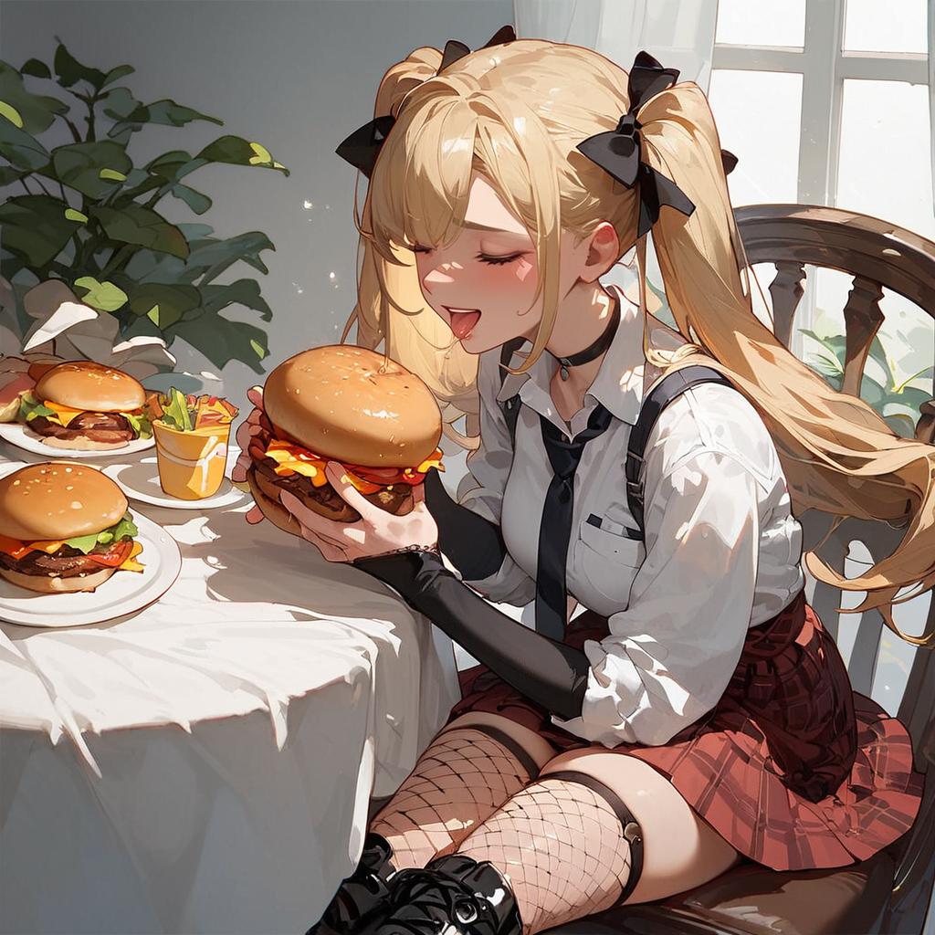 Blonde Twintails Eating a Giant Burger