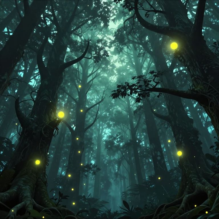 Ethereal Upside-Down Bioluminescent Forest