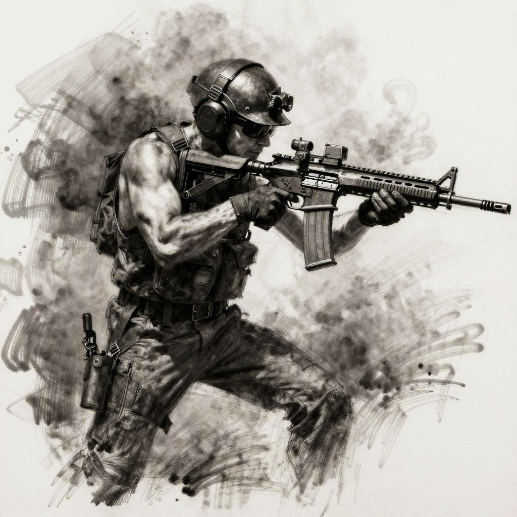 Dynamic Charcoal Tactical Rifle Sketch