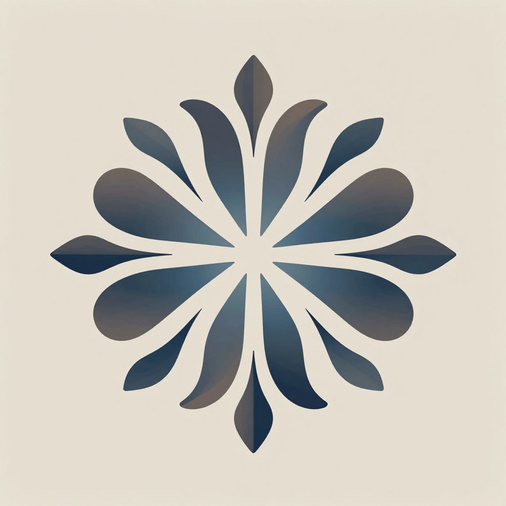 Digital abstract design: Deep blue, gradient, petal-like shapes radiate from a central white point, forming a symmetrical floral pattern on a white