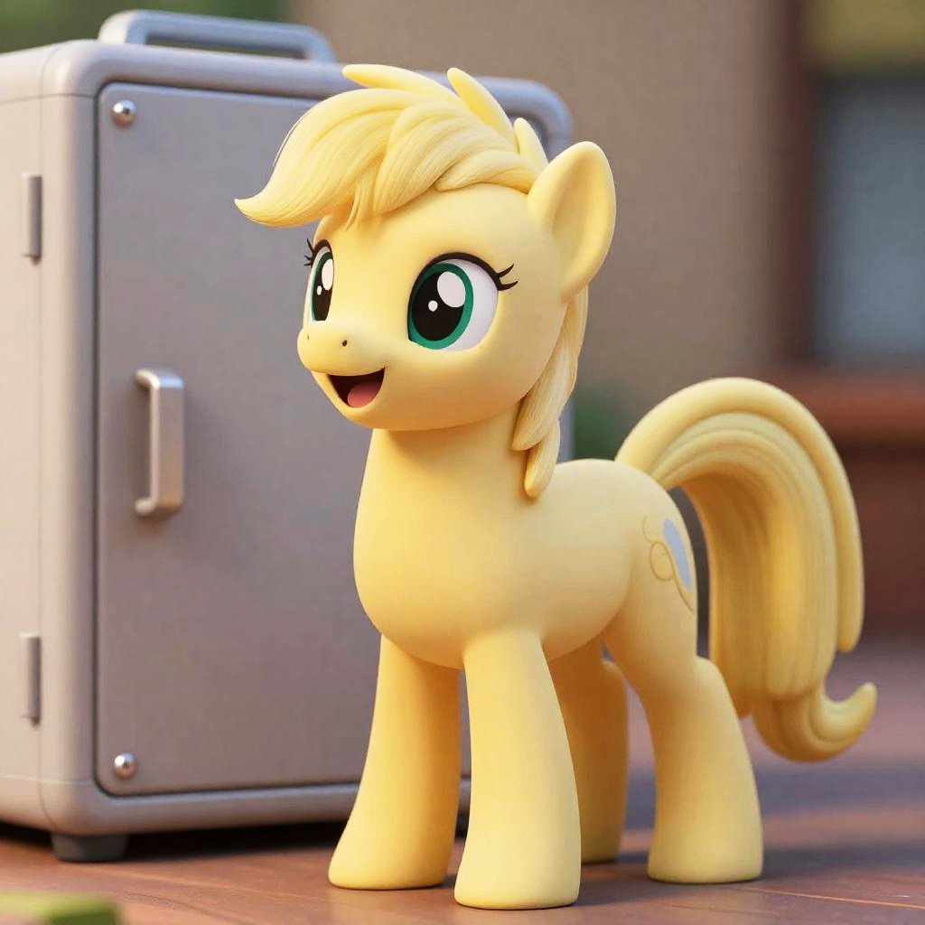 Safe, score_9, irl, photo, [[plushie]], solo, pony hitch trailblazer, full body, smiling, detailed fur, ear fluff, cinematic lighting, soft shadows, artstation, digital illustration, detailed, sharp, smooth, vibrant colors, smooth gradients, depth of field