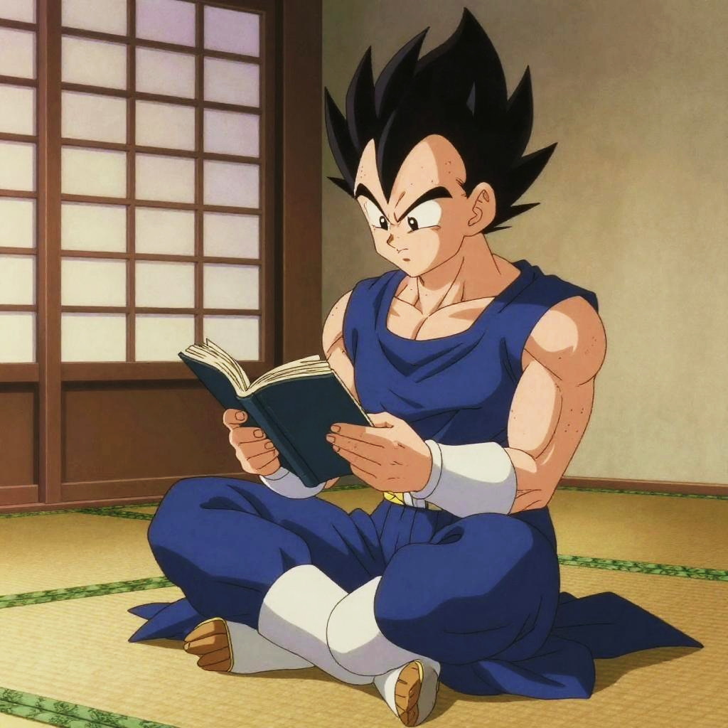 Vegeta Reading in Traditional Japanese Room