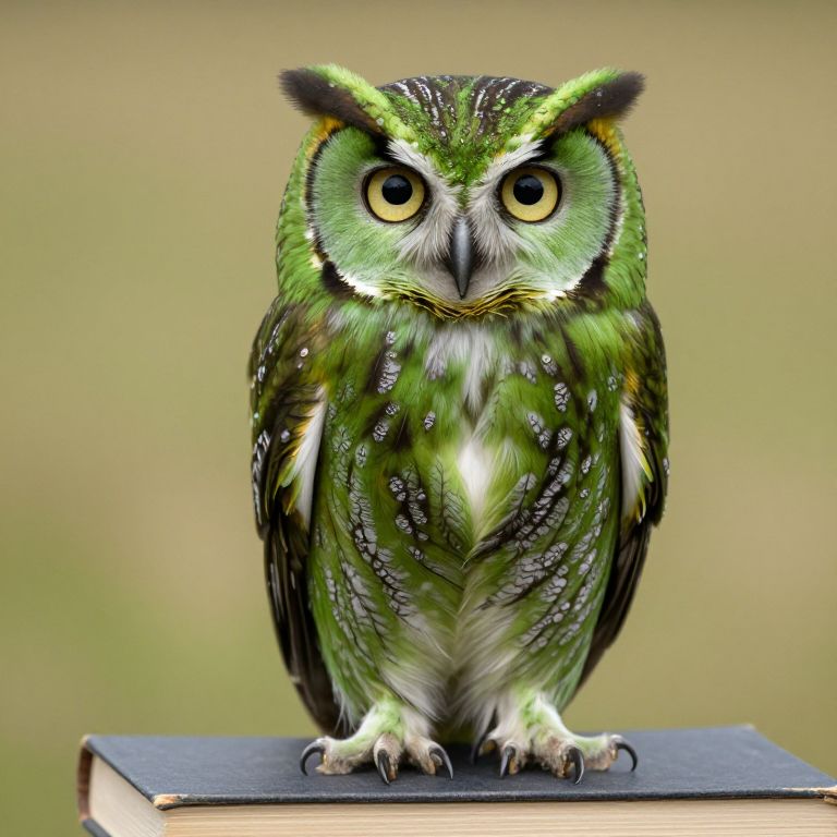 Green Owl Perched on Book