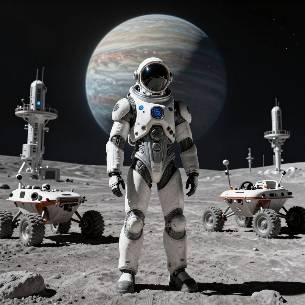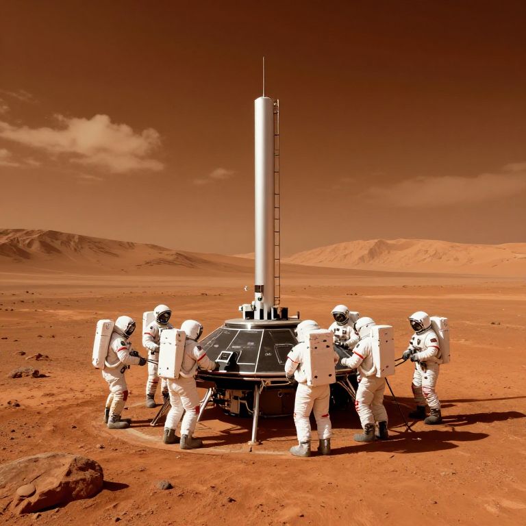 Ascender a simple base station on Mars with 8 astronauts conducting daily chores outside of the base,