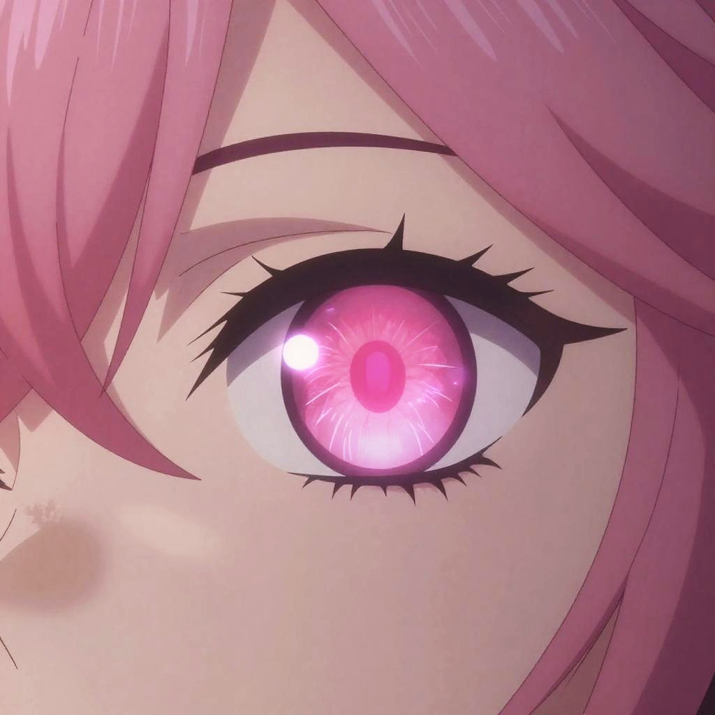 Yae Miko eye color, vibrant pink irises with a mystical glow, anime style close-up portrait, intricate detail, soft lighting, magical atmosphere