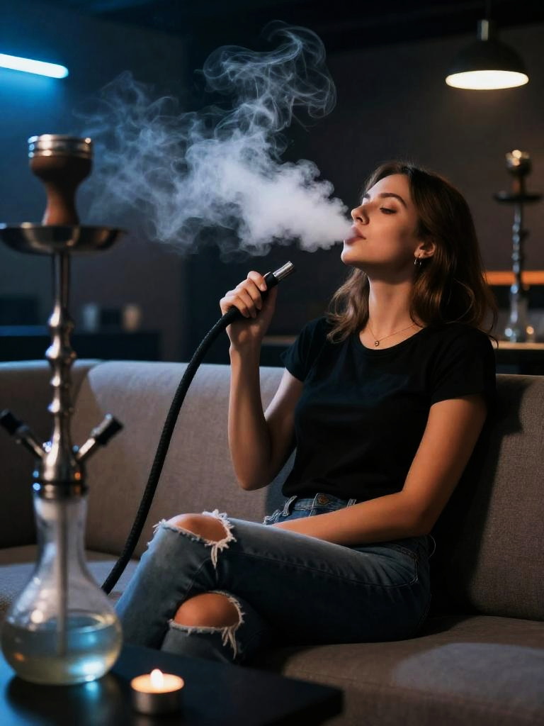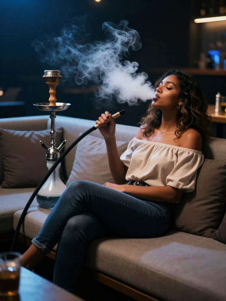 Woman Smoking Shisha in Lounge