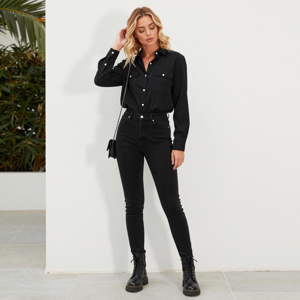 Blonde Woman in Simple Attire Portrait