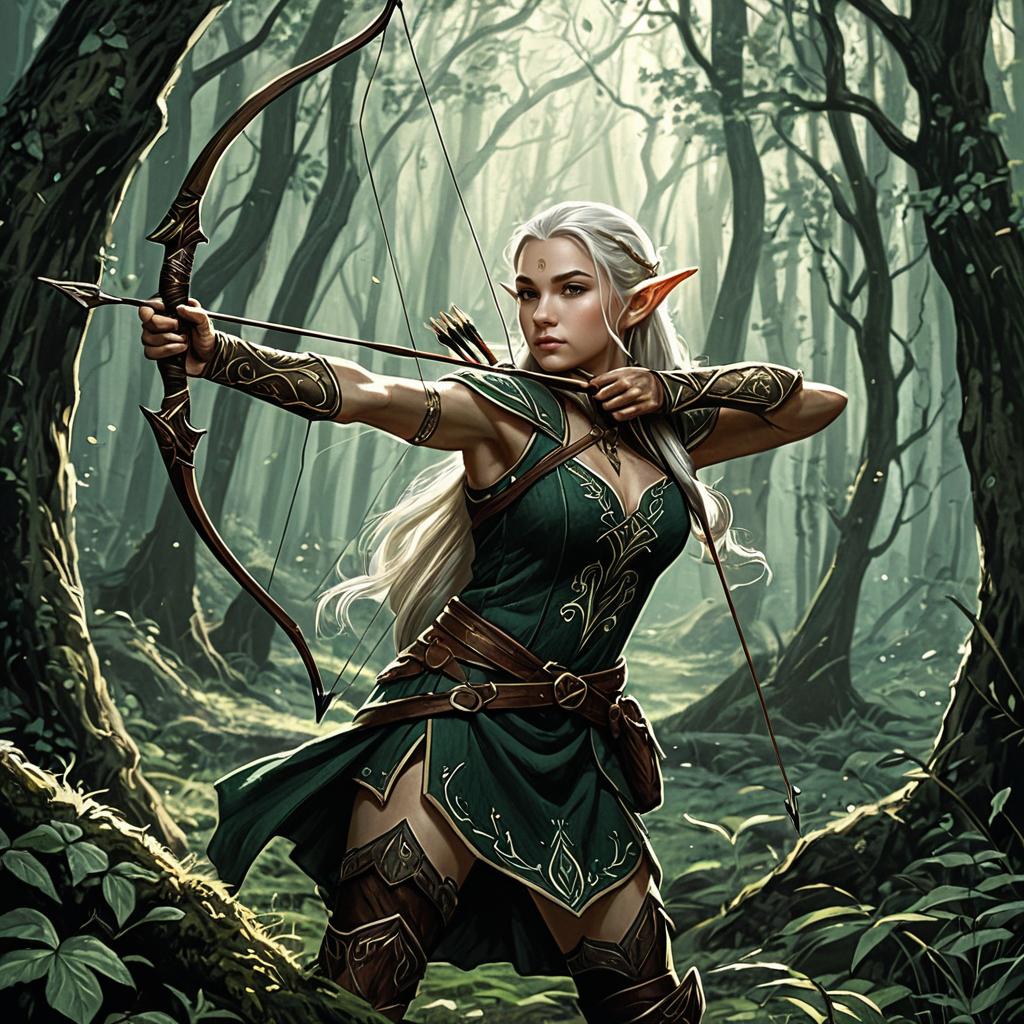 Joe Madureira drawing style, depicting an ancient druid commanding nature spirits in an enchanted grove, with flowing organic lines with glowing magical auras