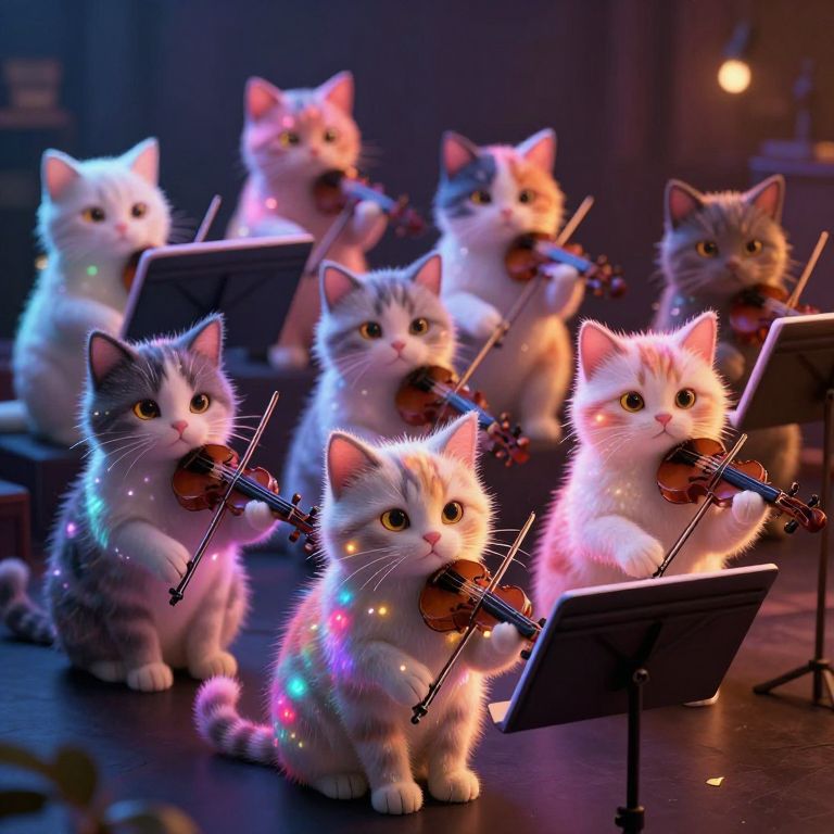 Whimsical Glowing Cat Orchestra