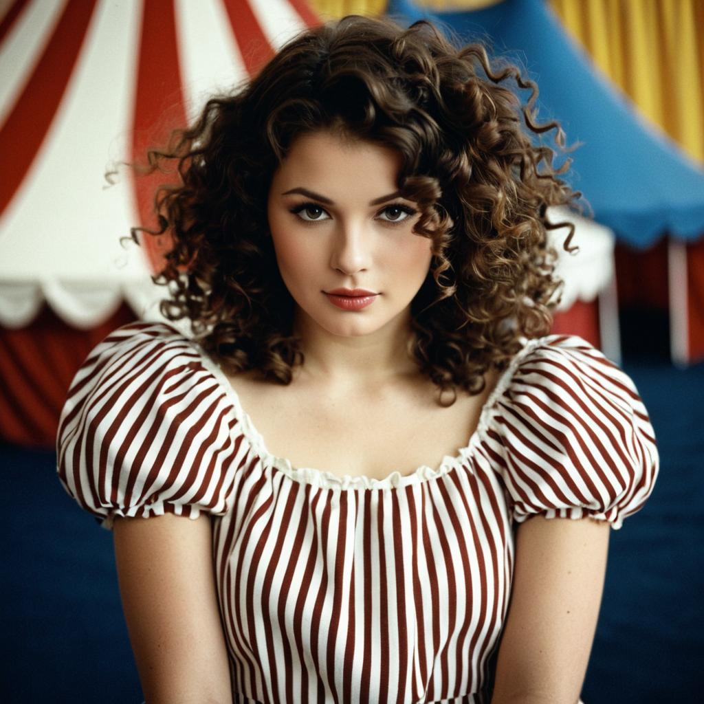 Woman in Striped Circus Outfit with Curly Hair