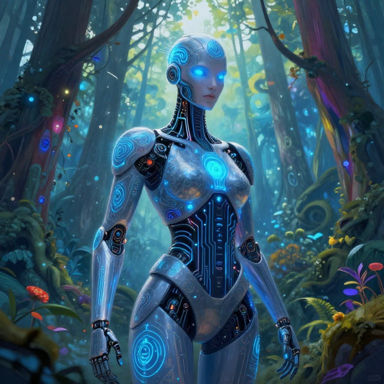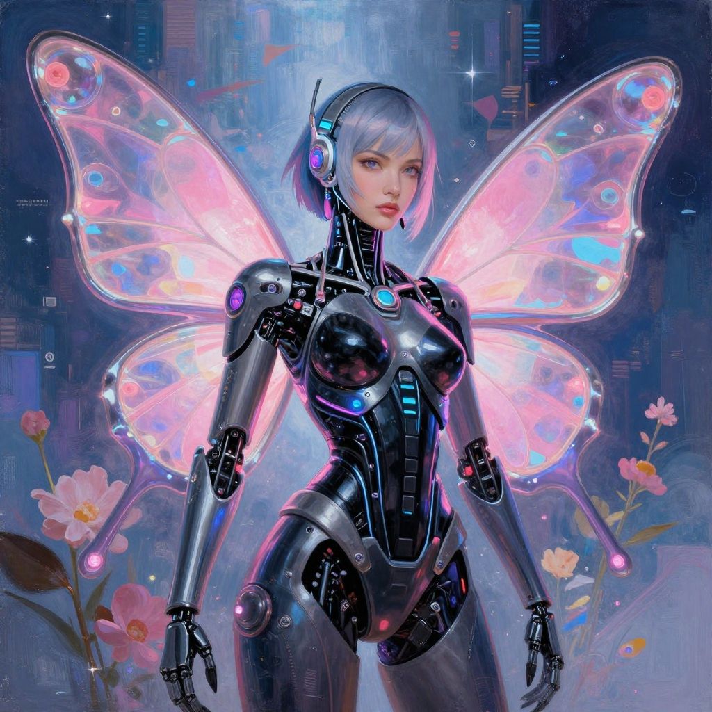Cyberpunk Android Woman with Butterfly Wings