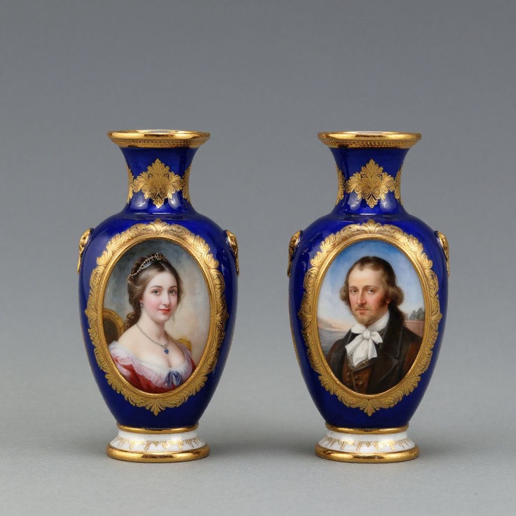Miniature Antique Enamel Portrait Vases
