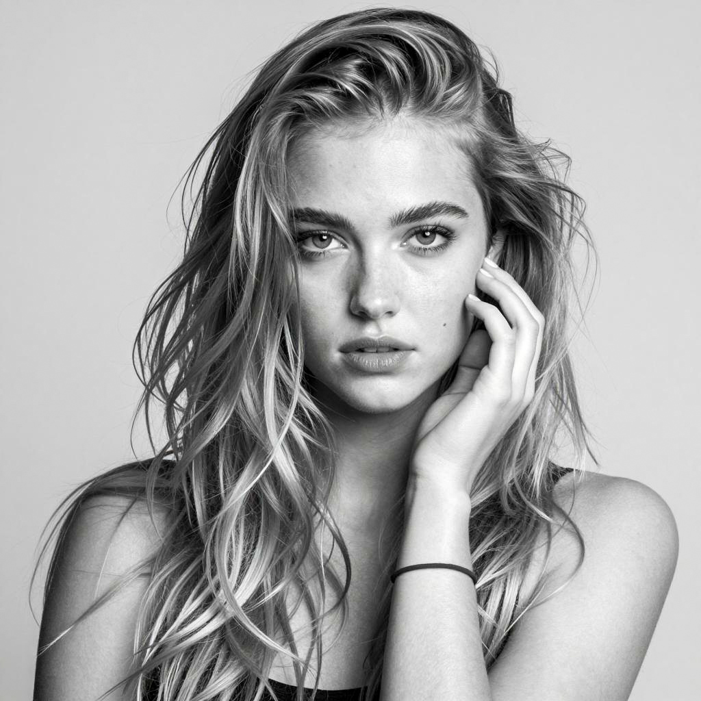 Intense Gaze of a Blonde Woman
