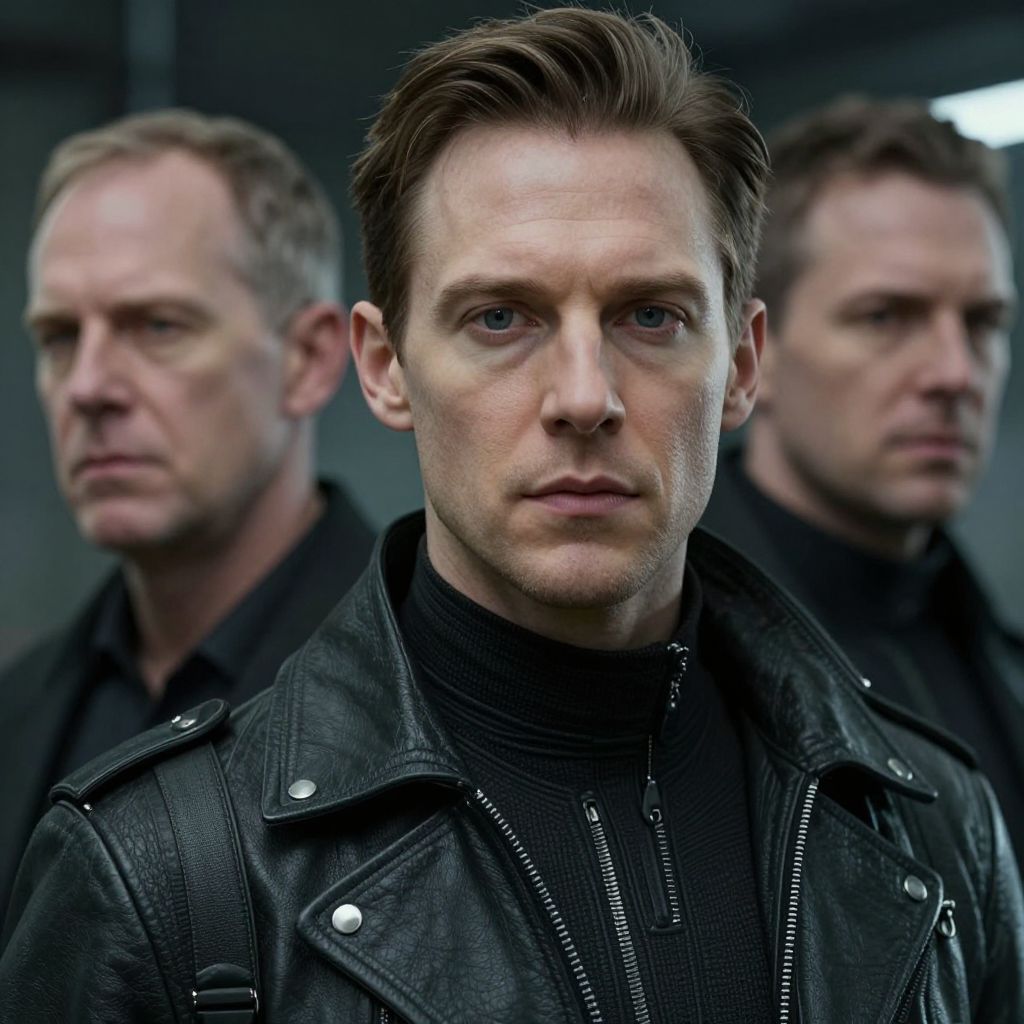 Hyperrealism aesthetic ridley scott and denis villeneuve and gaspar noe style colour photography of a detailed hyperrealism cyberpunk model with perfect face posing in detailed cyberpunk