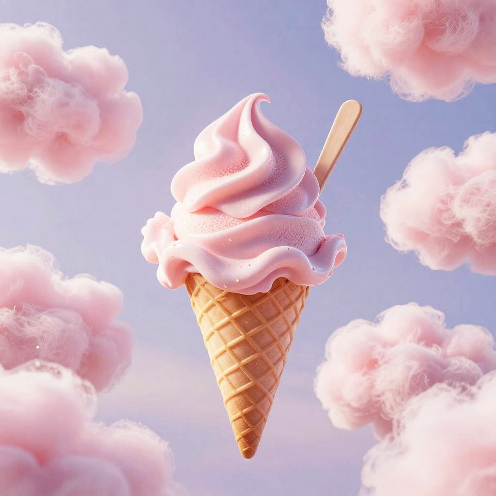Child Enjoying Pink Cloud Ice Cream