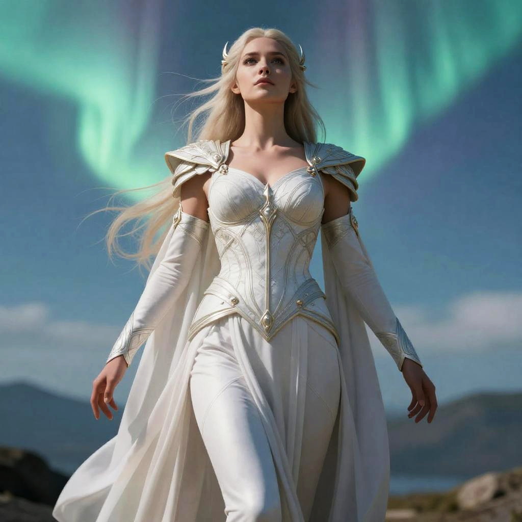 Valkyrie, posing heroically, heavenly, full body close-up shot, elegant, realistic character concept, high fantasy, celestial aurora, golden ratio, cinematic lighting, hyperdetailed, high resolution, insanely detailed and intricate, artstation, marc simonetti, greg rutkowski, octane render, 8k
