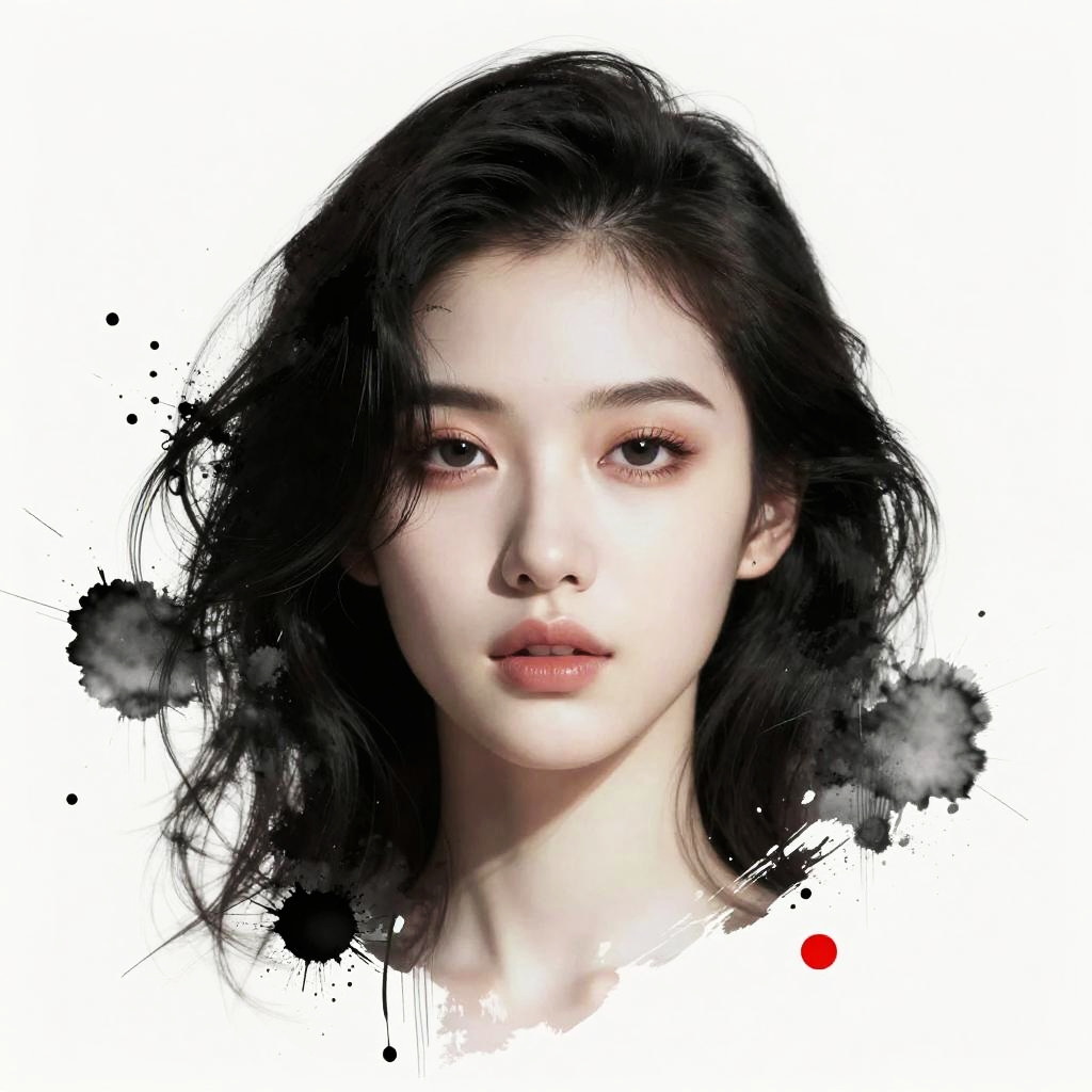 A striking portrait of a woman adorned with green paint dripping down her face and leafy elements entwined in her dark hair. The image combines natural and surreal elements, evoking a mystical, forest-inspired aesthetic with detailed, high-contrast lighting that highlights her serene yet intense expression.