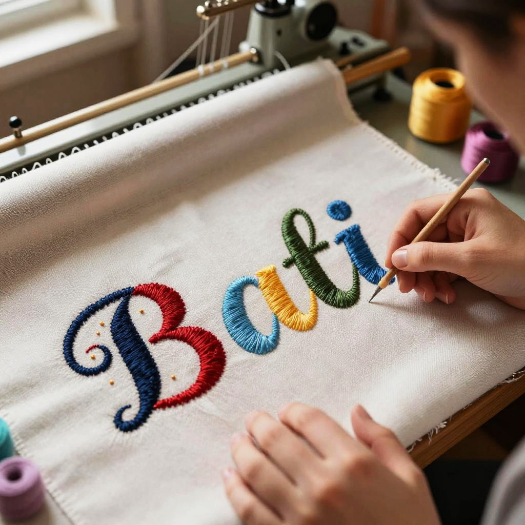 Artistic Embroidery Font Creation Scene