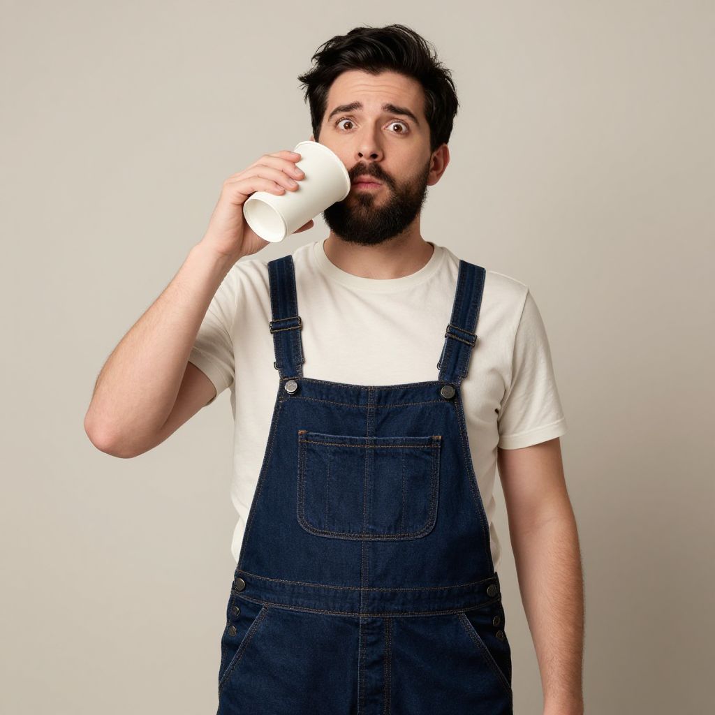 Realistic Drunk Man in Overalls