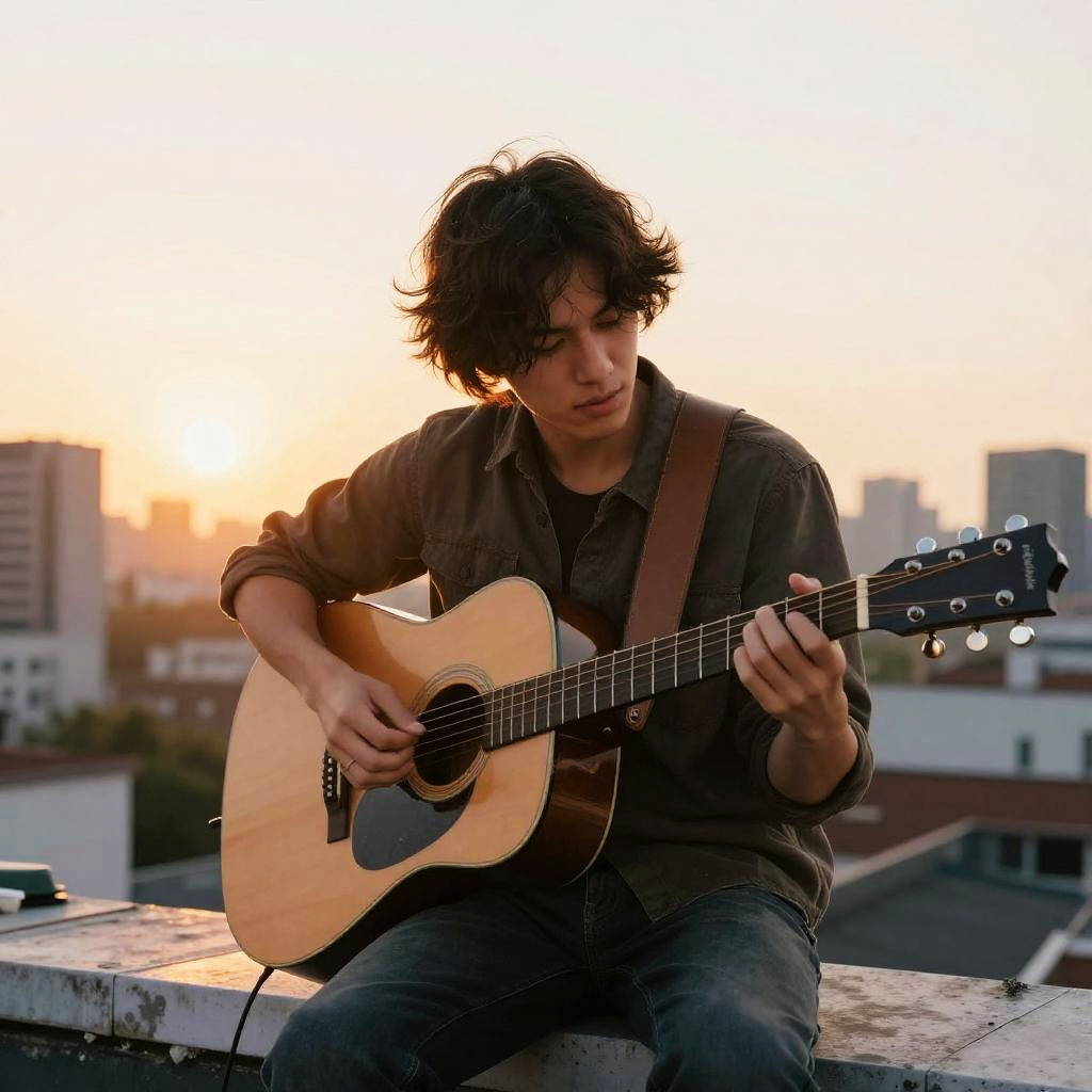 Cinematic Guitarist at Sunset