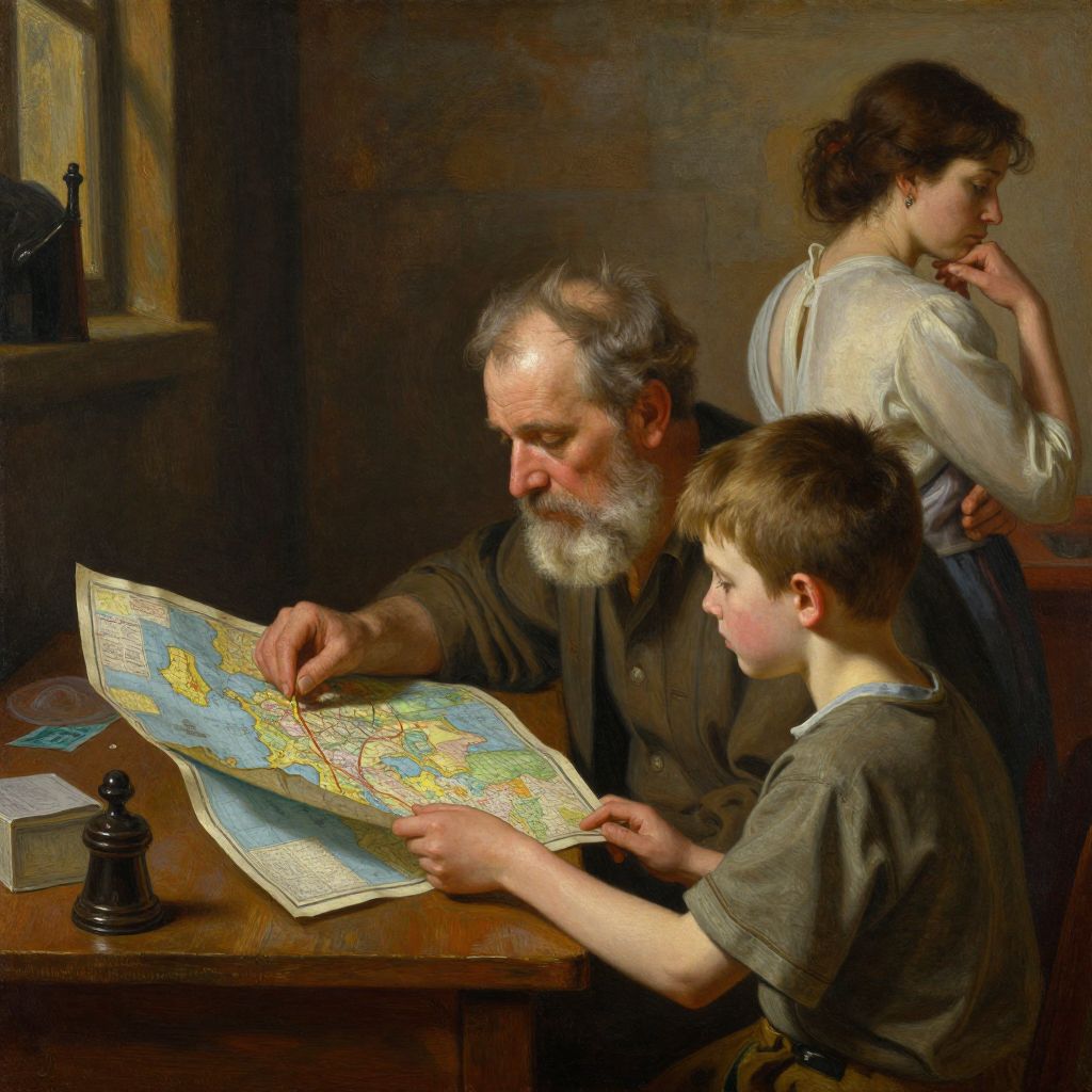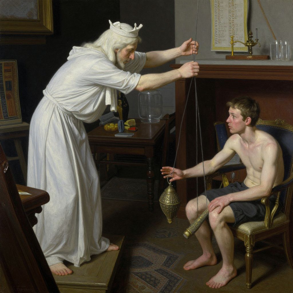 A god as the puppet master of mankind, part by norman rockwell, part by greg rutkowski, part by mattias adolfsson, high angle, intricate, detailed, volumetric lighting , oil on canvas