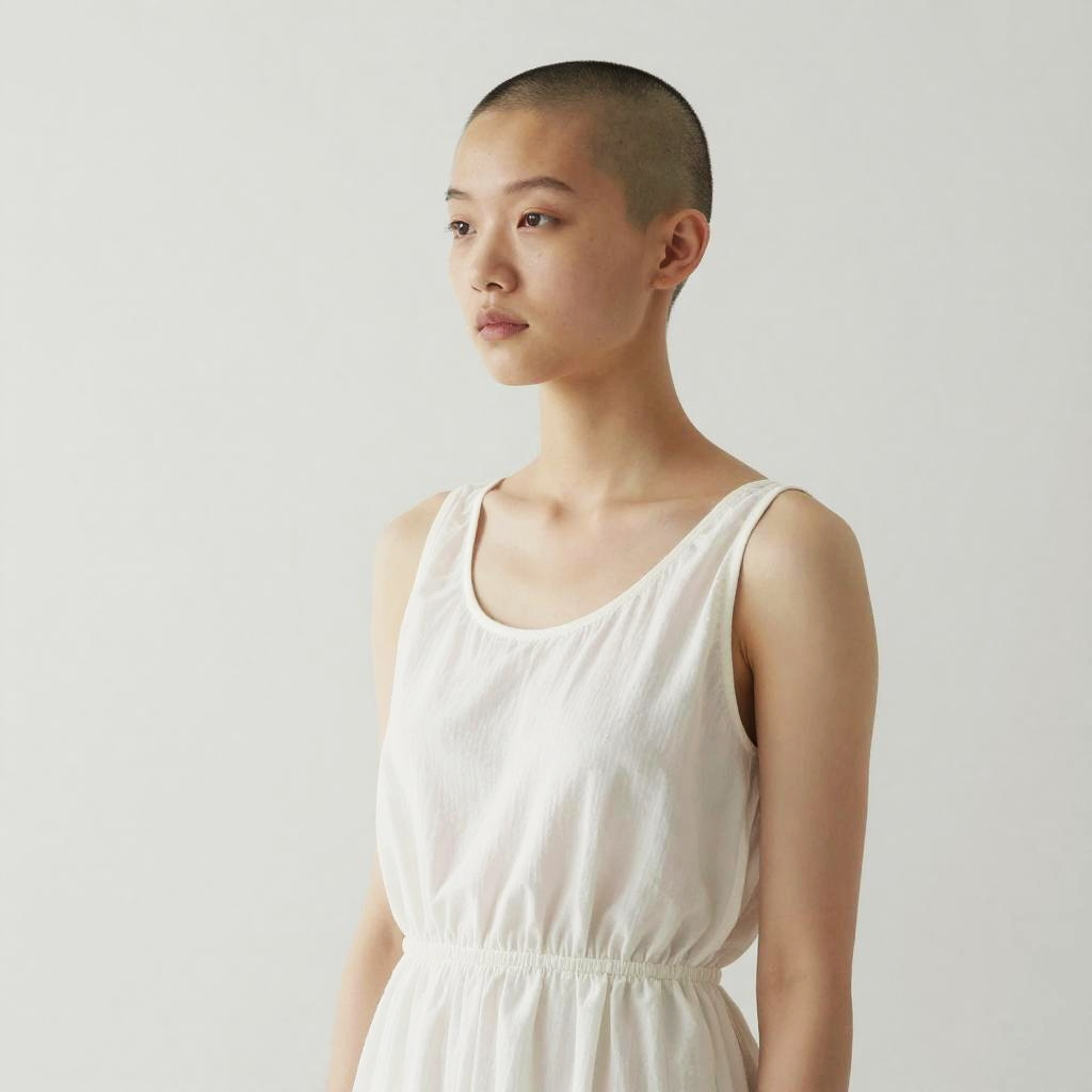 Serene Bald Girl in White Dress