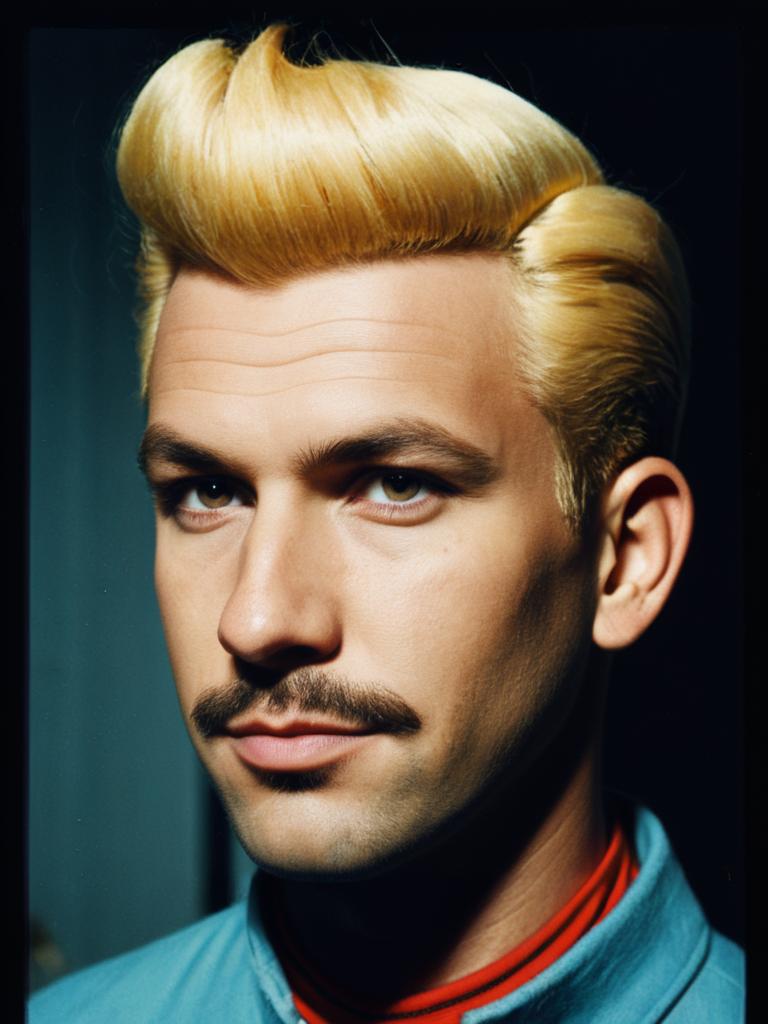Man in Tintin Costume, close-up detailed headshot with quiff hairstyle --sref 1399