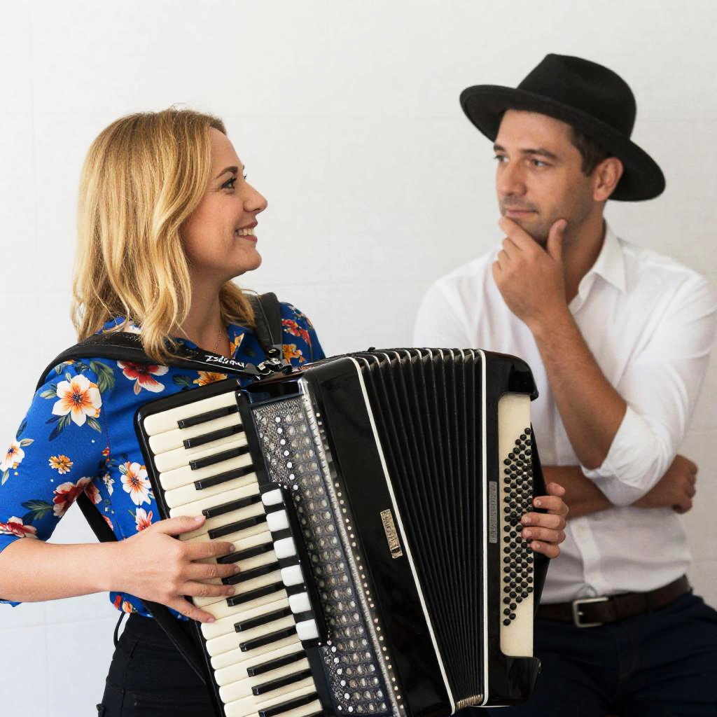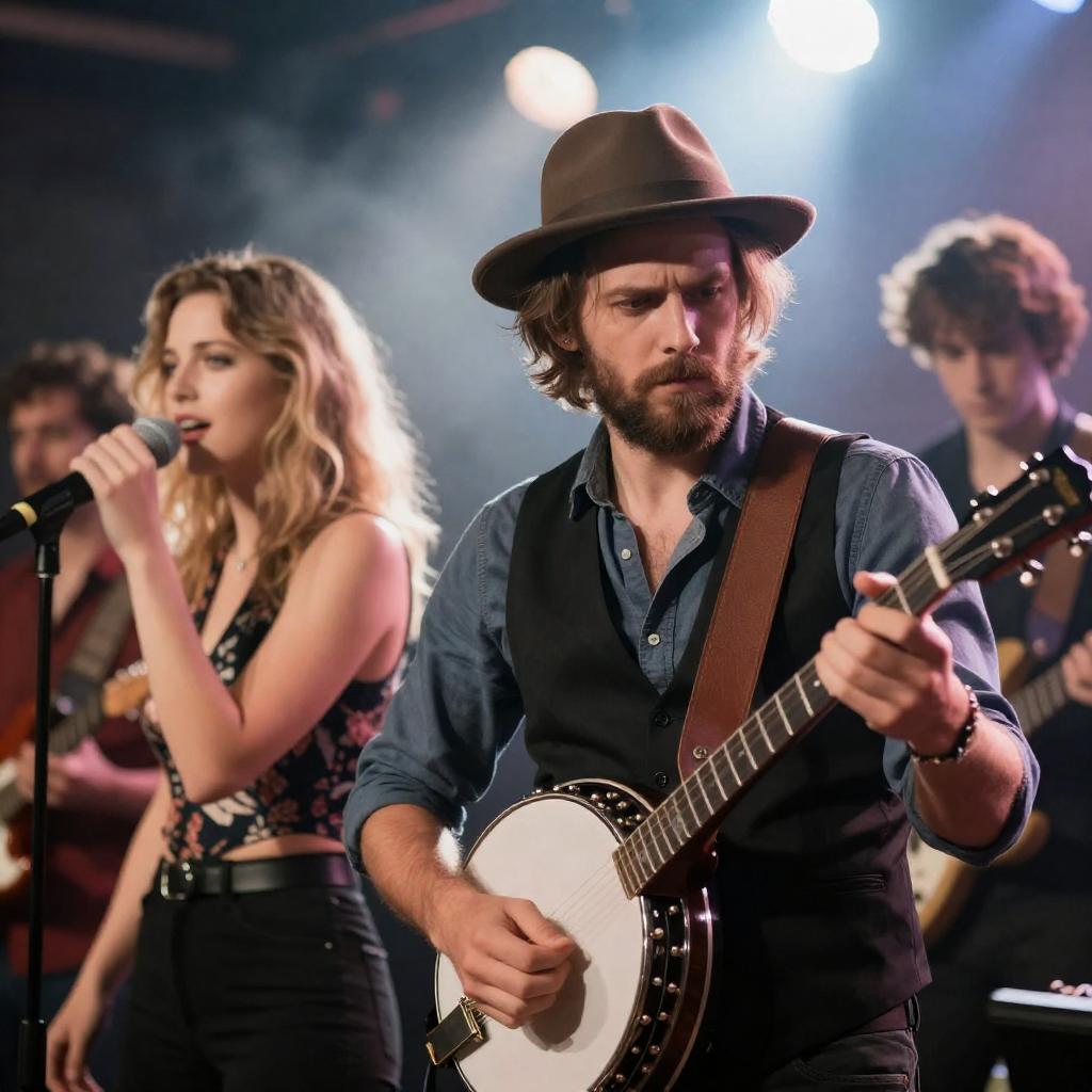 Blonde Singer and Bearded Musician Duo