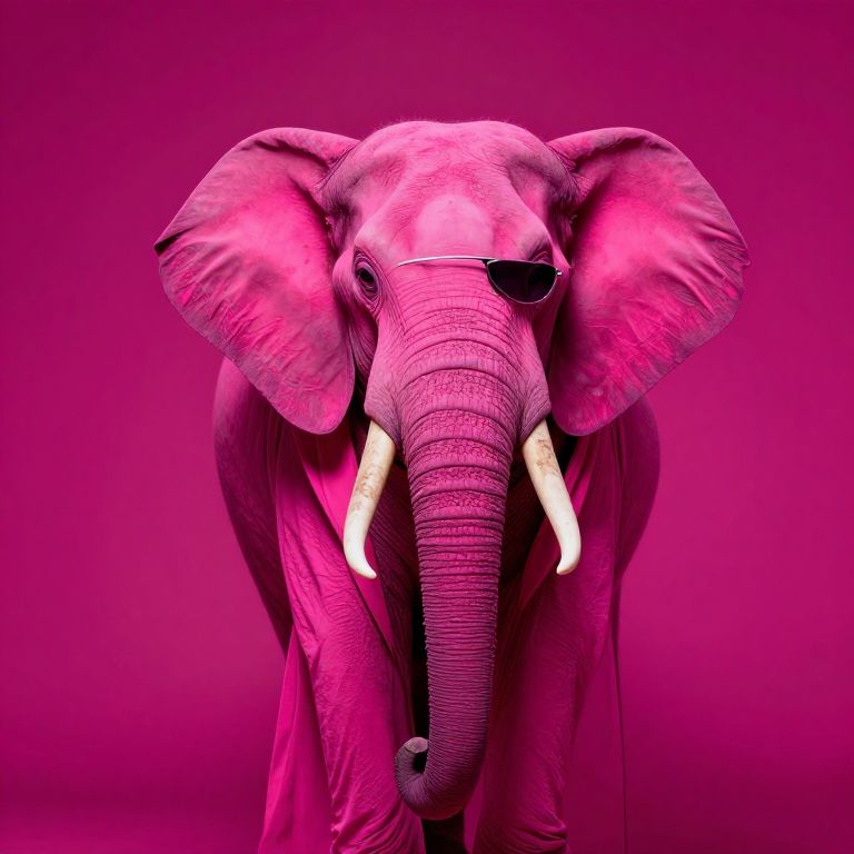 The best mobile wallpaper, Award-winning wallpaper, Portrait Photography, In front view is a portrait of a elephant wearing 1960s mid-century space-age fashion, Side view shot, Shot with Canon EOS R5, Setting a stark contrast that accentuates the subject, Fluorescent maroon shade, Wearing a very fashionable lounge coat and sunglasses are a hip 1960s style, Clothing all in one color, Beautiful background