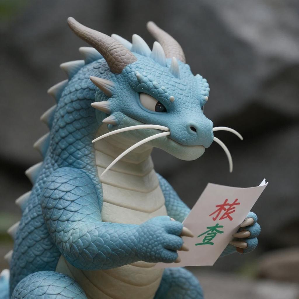 Photograph of a gray, dragon-like creature with a regal crown adorned with red and gold accents, sitting amidst coiled, dark brown, ured ropes. The creature's stern expression is highlighted by its detailed, scaly face and whiskers. Partially visible human legs and blurred background create a sense of depth.