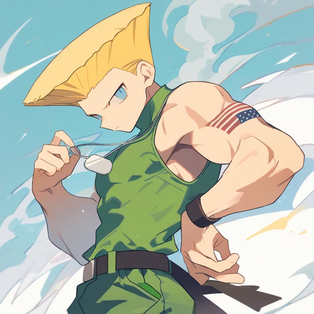 Illustration of Guile, street fighter in the style of Daizu (melon-lemon)