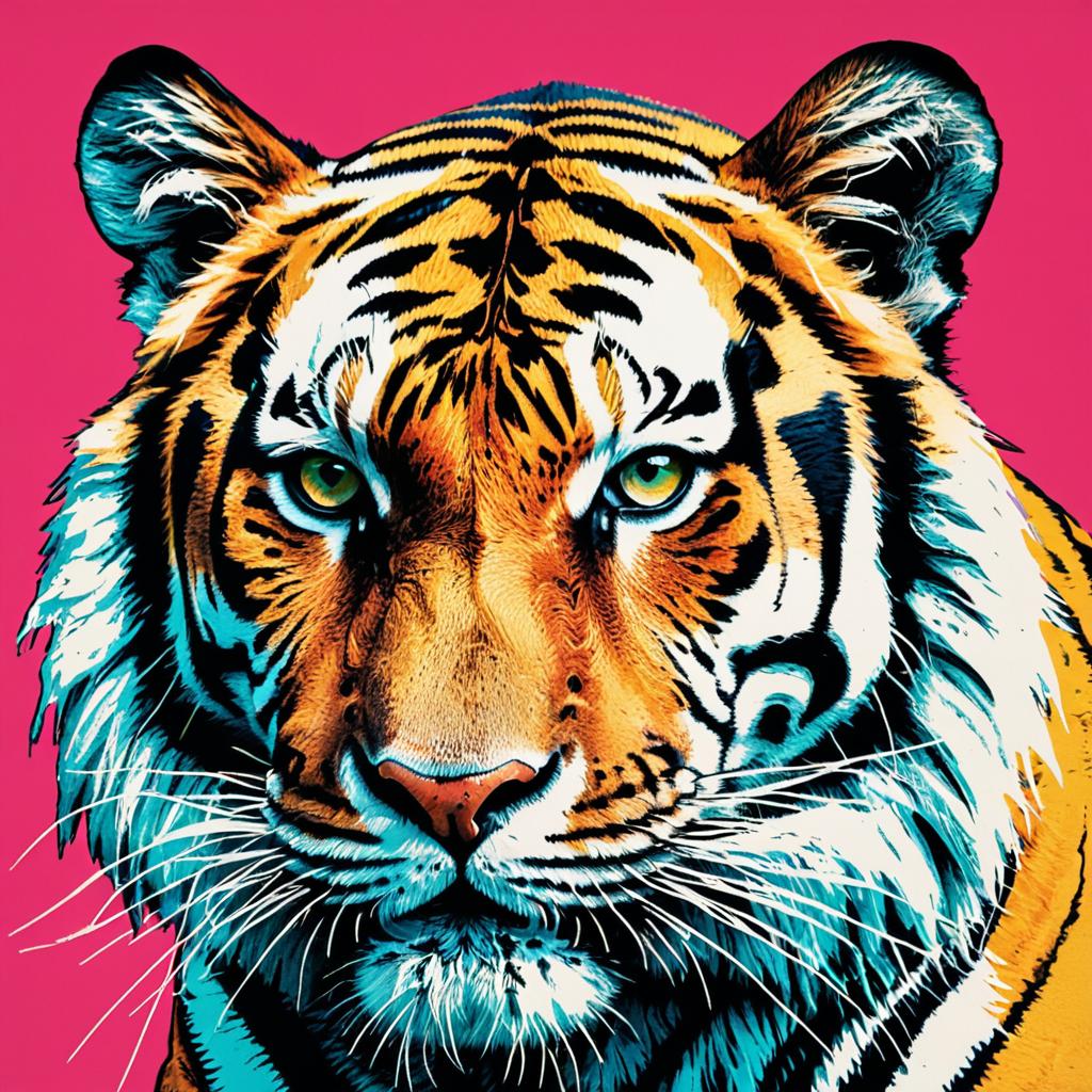 A retro-inspired profile photo of a light-colored tigress styled in a retrowave aesthetic. The image features electric and pastel hues with a soft, glowing effect that captures a nostalgic, 80s vibe. The tigress’s profile is detailed, with subtle lighting and shadowing, creating a visually striking and atmospheric piece perfect for a vintage-inspired look.