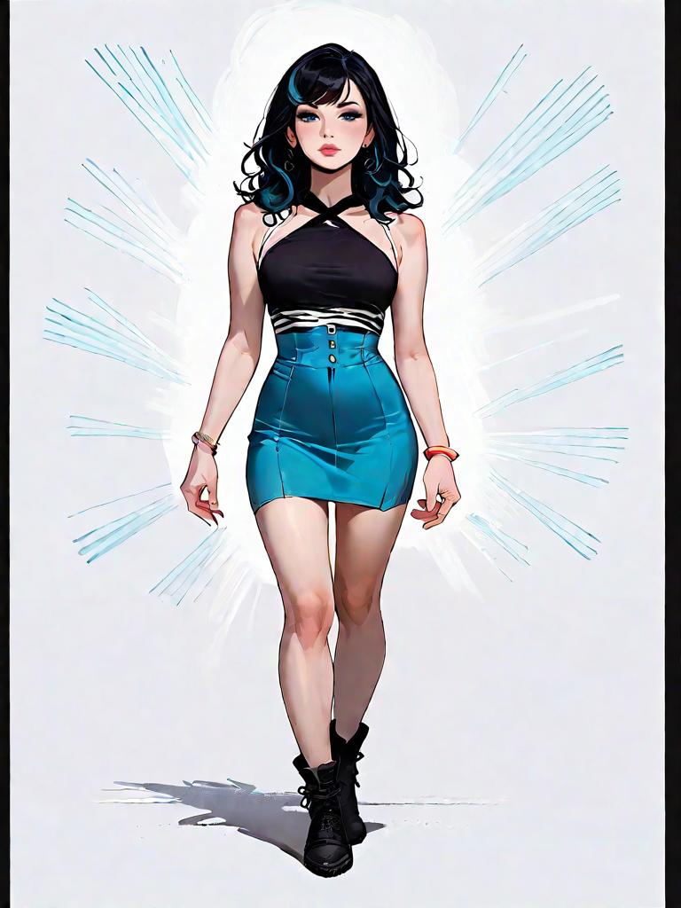 1girl, source_comics, realistic face, full body shot, Woman, chic, leopard print, strapless dress with a sweetheart neckline, knee-length, fitted silhouette, black high-heeled sandals, simple gold bangle.