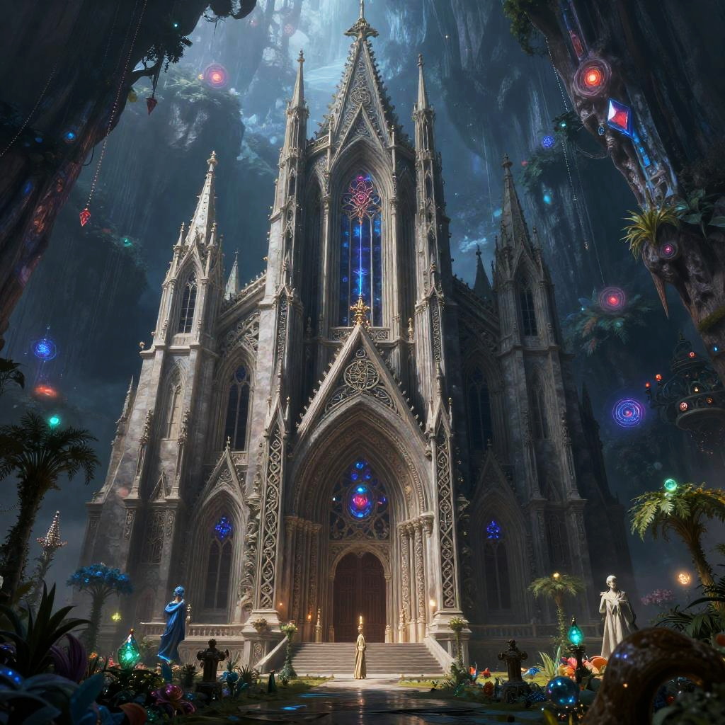 Bioluminescent Elven Cathedral in Cliffside Garden