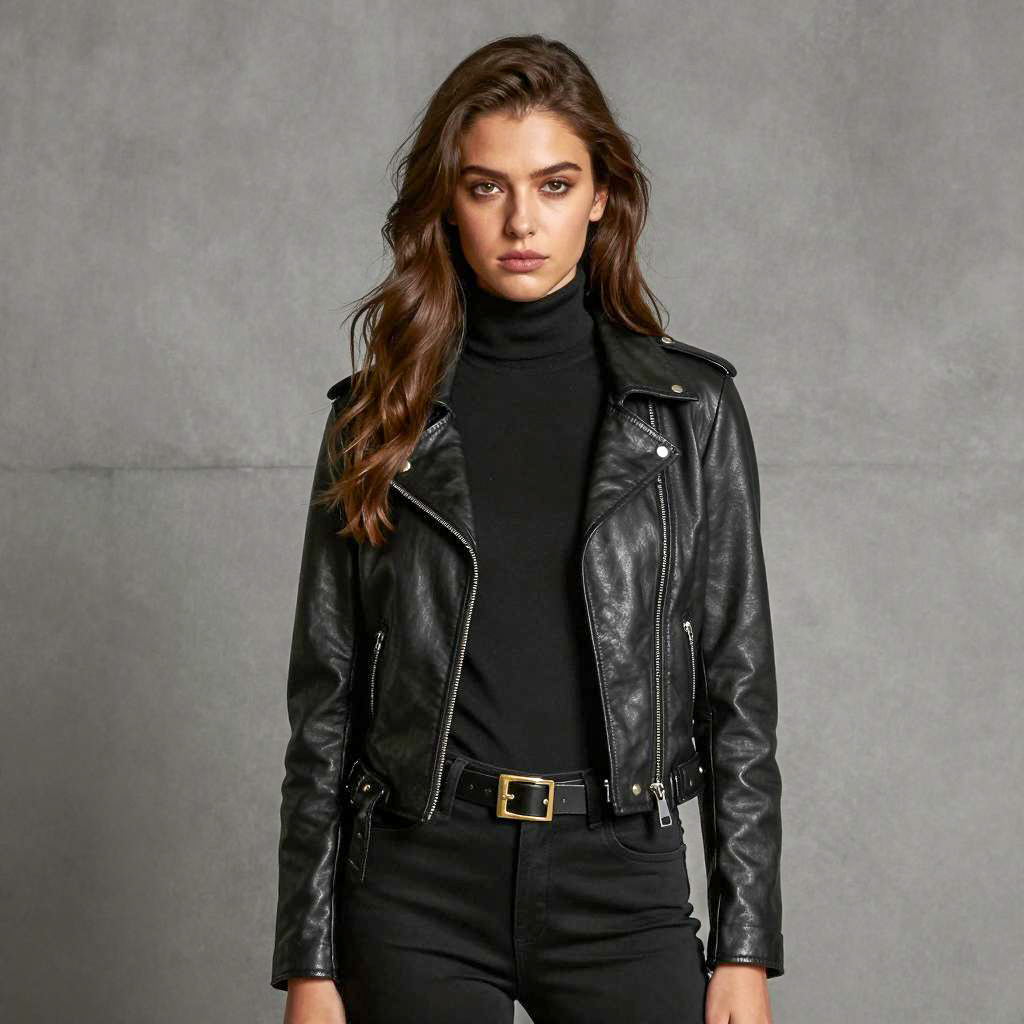 Young woman in black leather jacket