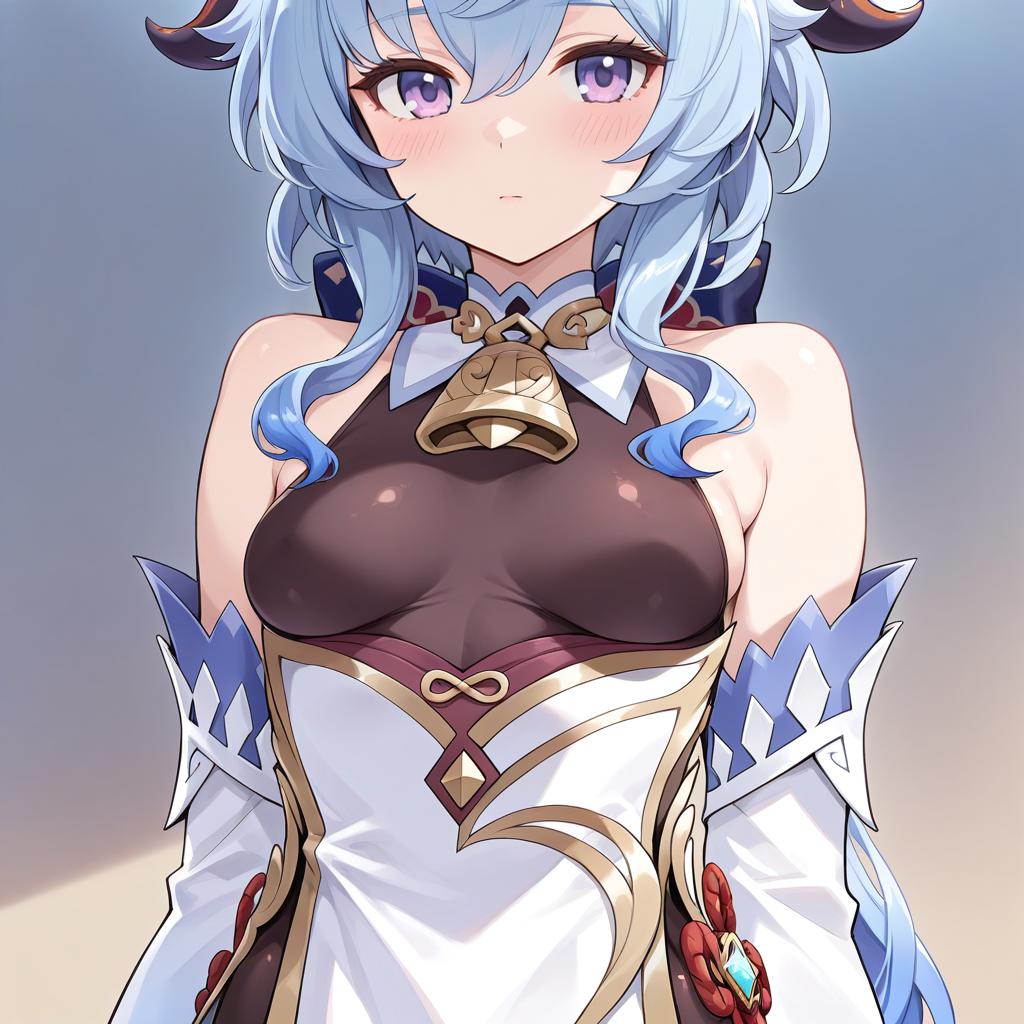 Beautiful color, detailed, amazing quality, arti BREAK 44c, 1girl, character: ganyu \(genshin impact\), solo, full body, indoors, sitting, looking at viewer, blush, smile, sideboob, black gloves, black pantyhose, detached sleeves, bare shoulders, white sleeves, tassel, vision \(genshin impact\), vase, paper, book, flower knot, gold trim, chinese knot, chair, window, white flower, thighlet, curtains, qingxin flower