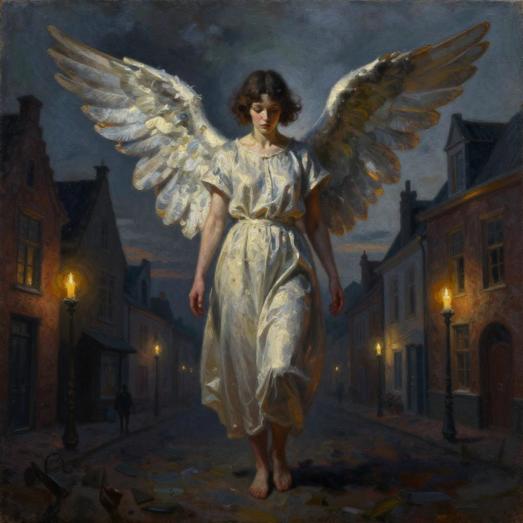 Angelic Eclectic Dusk Flemish Streetscape Vision