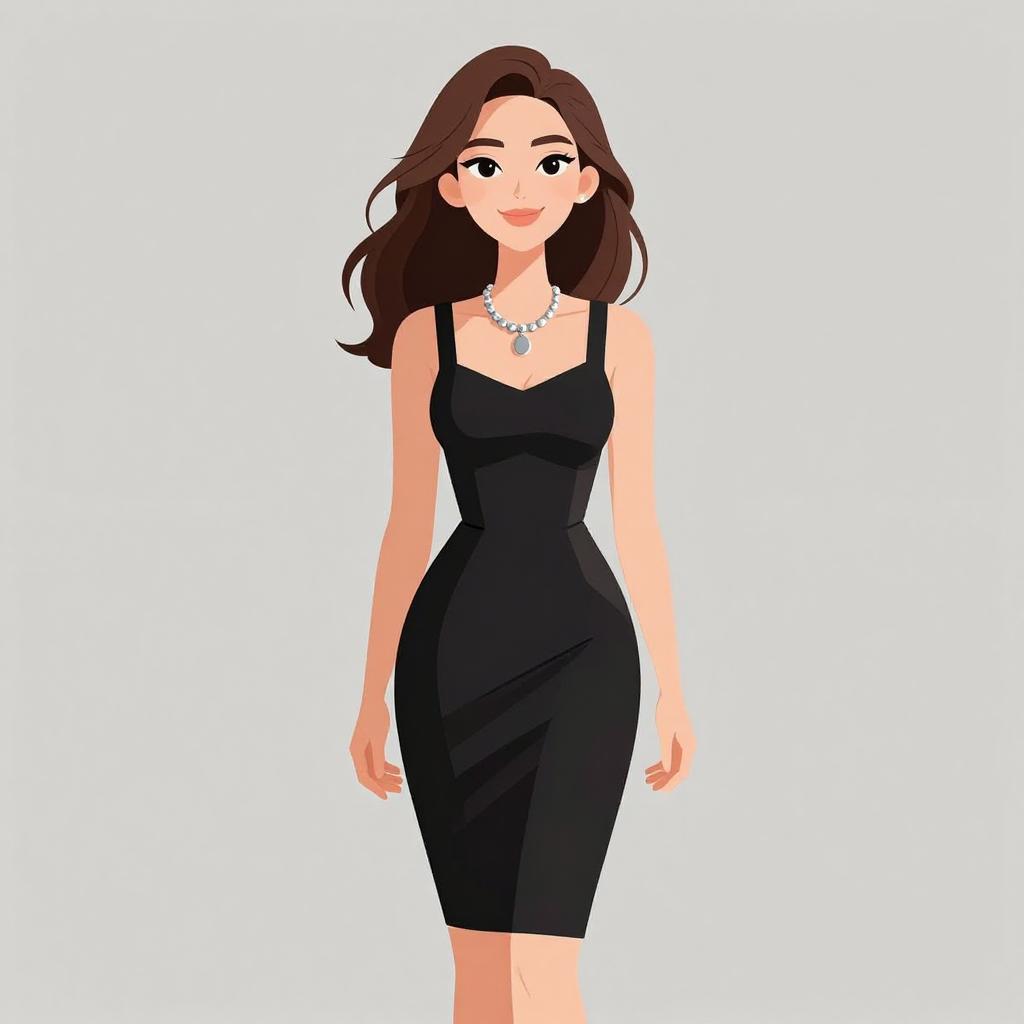 Woman with pretty face and pretty hair. smiling Woman, chic, body-hugging knee-length dress in deep green, asymmetrical neckline with one shoulder strap, ruched sides, diagonal zipper detail in silver, black ankle strap heels with fringe, minimalist silver cuff bracelet on one wrist. --sref 1467
