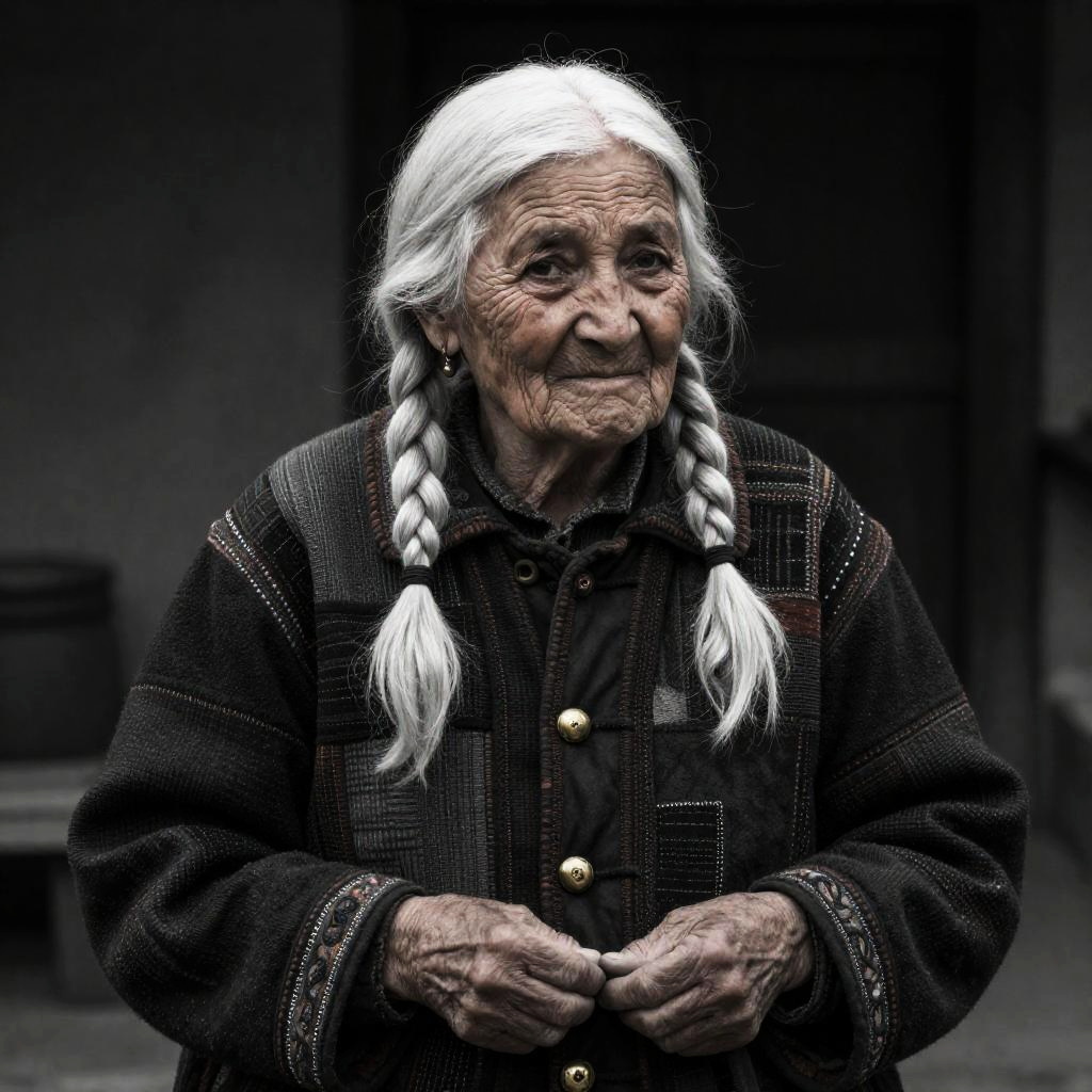 An elderly man with a gray beard adorned in an optic-checkered scarf. The artwork is rendered in detailed 2k resolution, showcasing sharp contrasts and deep, saturated blacks for a striking visual impact.
