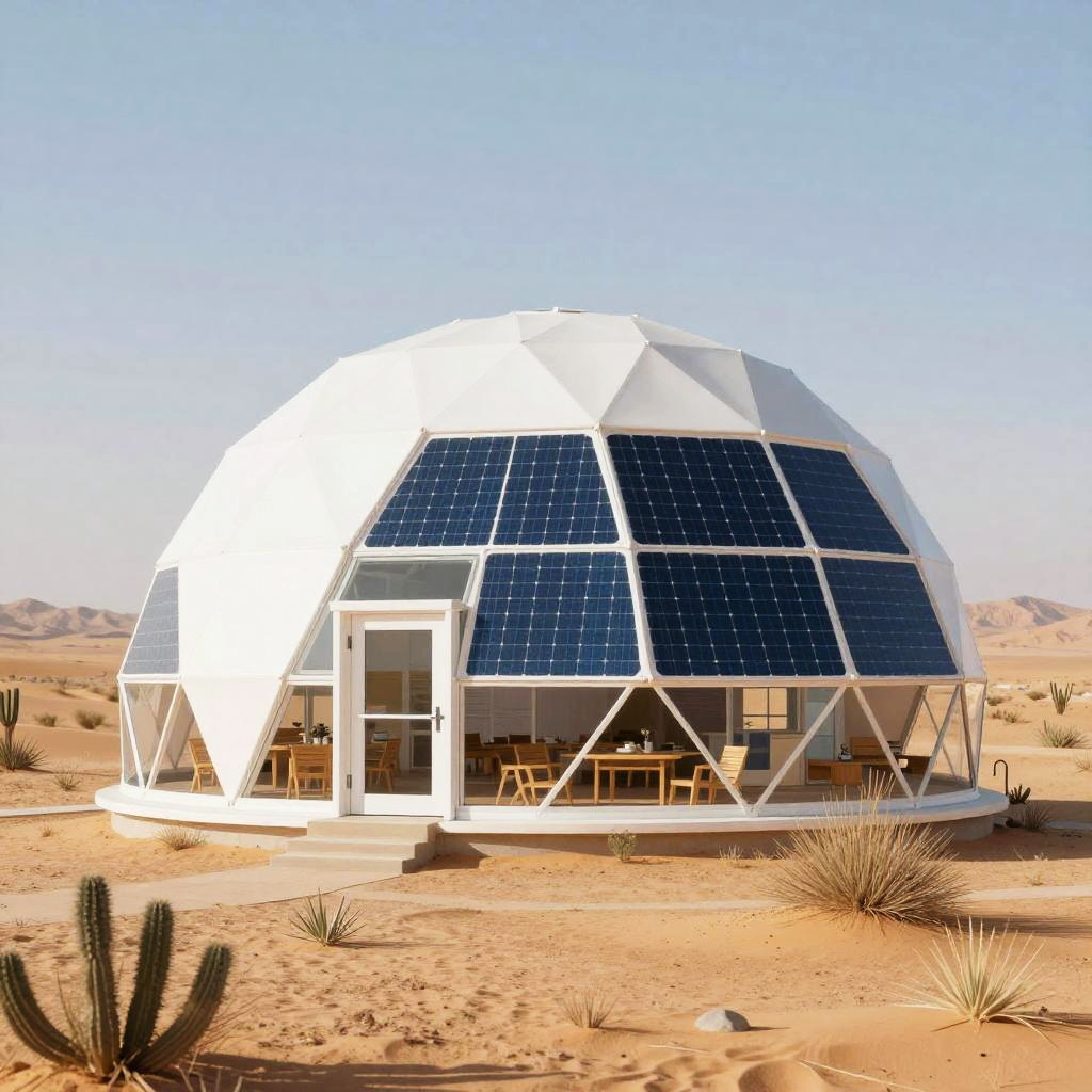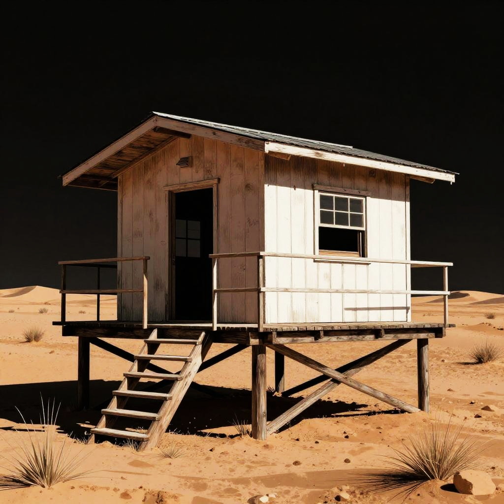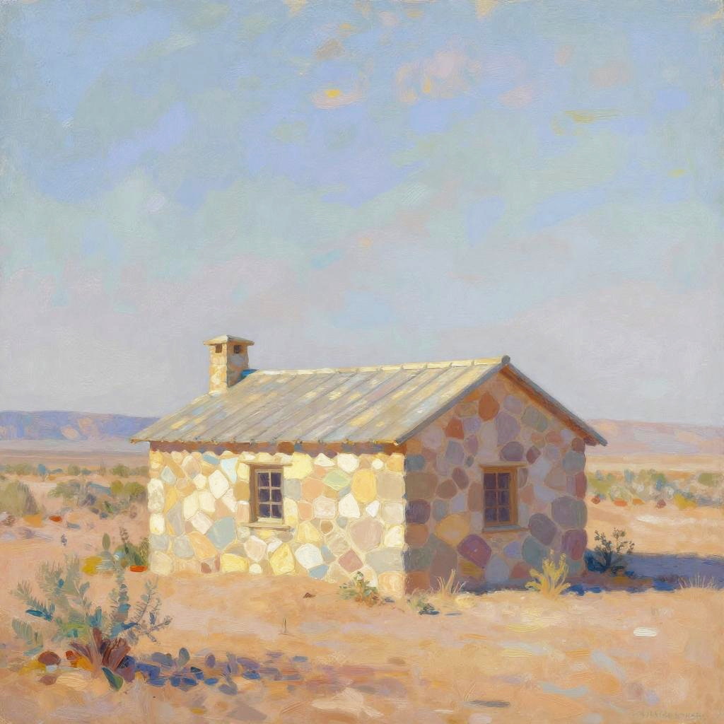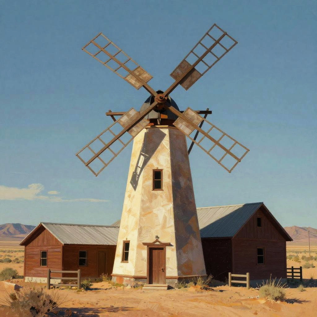 Full color illustration, a sunken desert greenhouse on a ranch in the desert, in the style of bio-mechanical surrealism, diffused twilight glow, highest quality, ultra sharp, h.r. giger inspired, ultra detailed, dark mysterious tones, misc-geometric