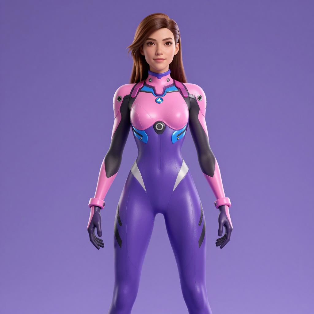 Powerpuff dress costume, photorealistic, female superhero, standing, full body, stone wall background, bright daylight, blue dress with rainbow patterns, high collar, red and orange accents, puffy sleeves, red gloves, pigtails, confident expression, white skin, athletic build, sneakers with red and white laces, realistic ures, 3D rendering, video game style, high detail, realistic lighting, symmetrical composition, centered subject, standing on stone pavement