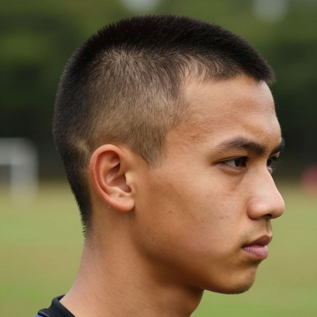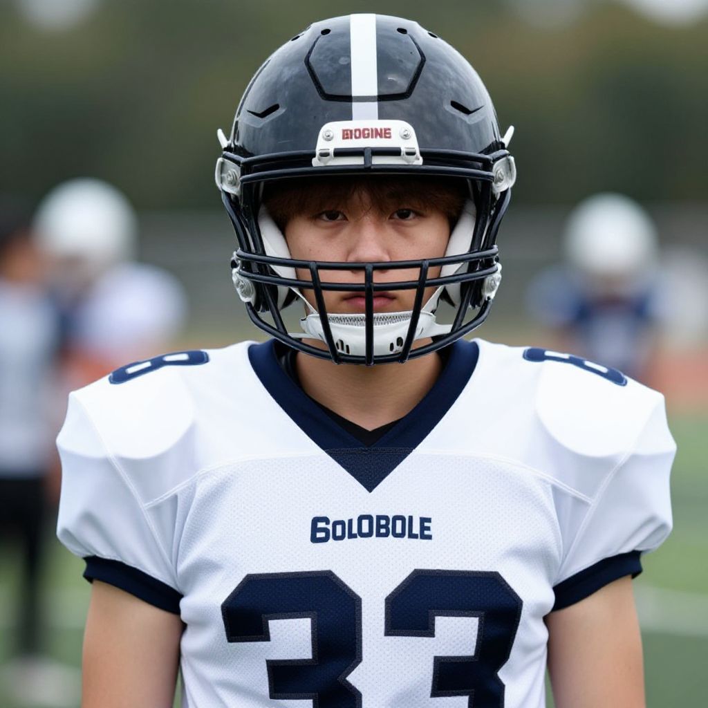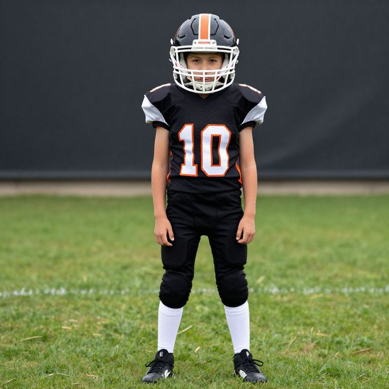 Boy wearing a yellow and red football jersey with the number 10 on it.
